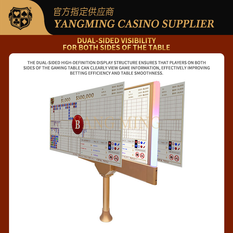 Kumarhane ekranıparlak LED aydınlatma ve ince, modern bir tasarım ile her iki taraftan da net görünürlük sağlar.TabloSürekli casino çalışması için tasarlanmıştır, istikrarlı performans, canlı grafik ve geniş görüntüleme açıları sunar.Çok dilli ekran, ve oyun yönetimi verimliliğini ve genel kumarhane sunumunu artırmak için logo markalama.